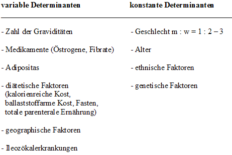 Als prädisponierende Faktoren für die Bildung von Cholesteringallensteinen