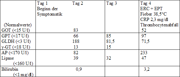 bei Gallengangssteinen entspricht derjenigen von Gallenblasensteinen.